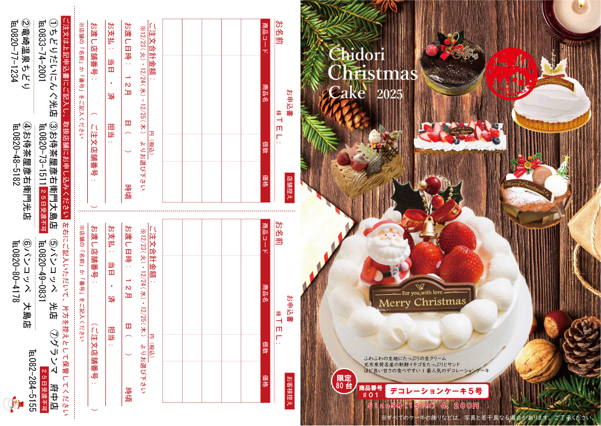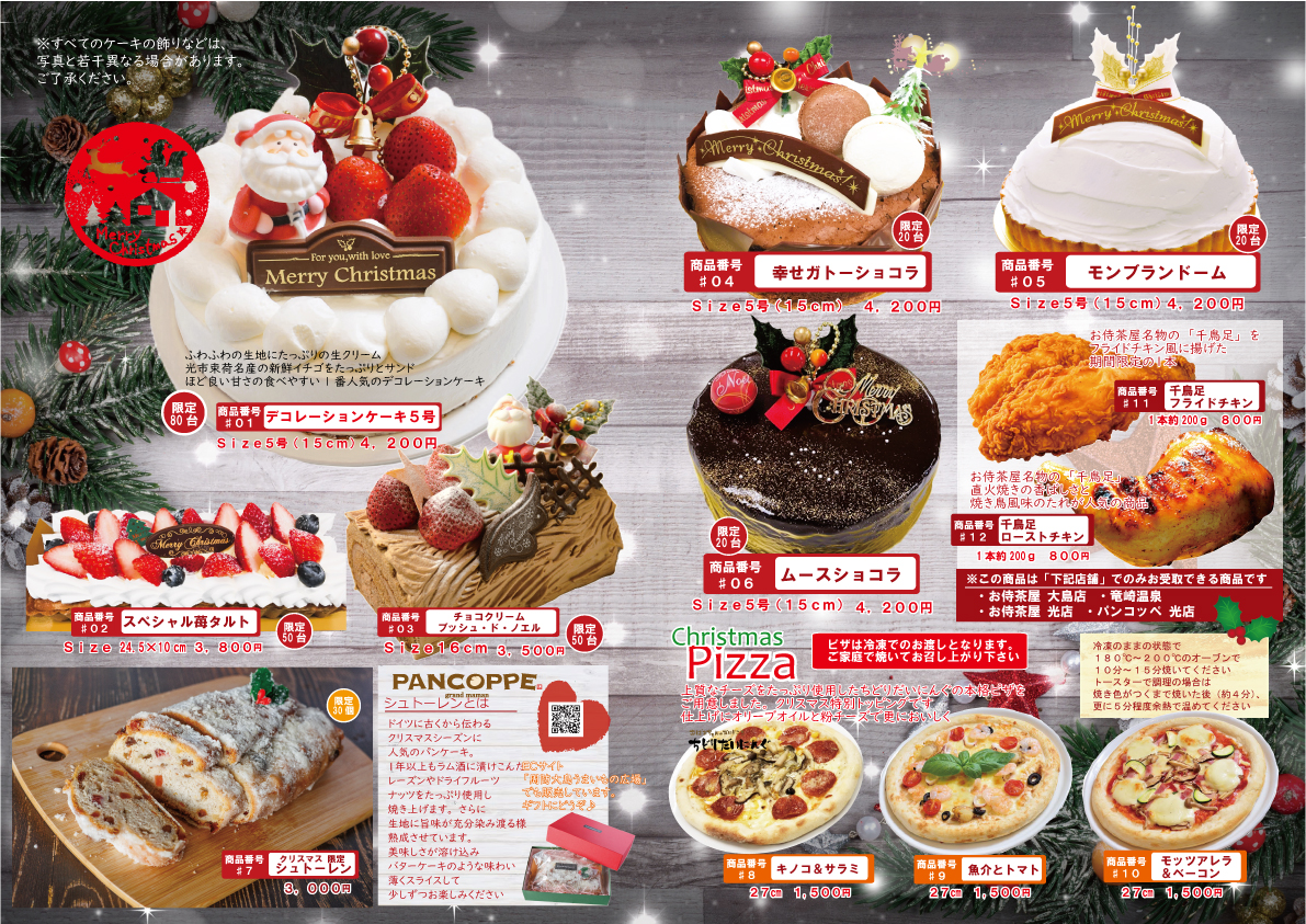 現在、ちどりグループ各店舗でクリスマスケーキの御予約を承っております🎅 ケーキの他に、ピザやシュトーレンなどのご注文も同時に承ります。ご予約は12月21日(日)まで。皆様のご予約を心よりお待ちしております🎄🎄🎄
